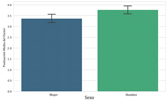 puntuaciones de los factores entre ambos sexos, no se encontraron